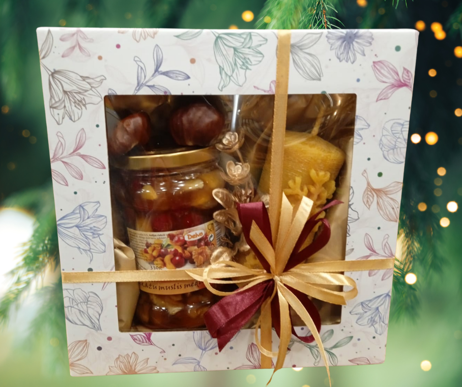 Dāvanu komplektā ietilpst dabīgi produkti: