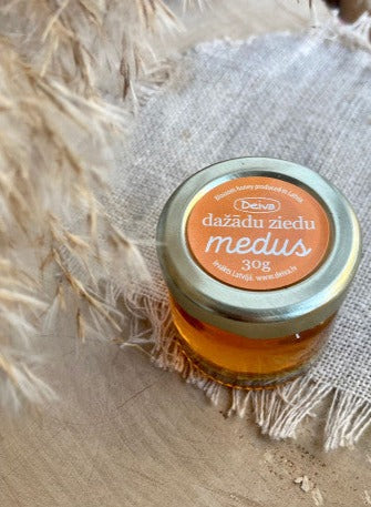 Dažādu ziedu medus, ievākts vasaras sezonā Latvijā.