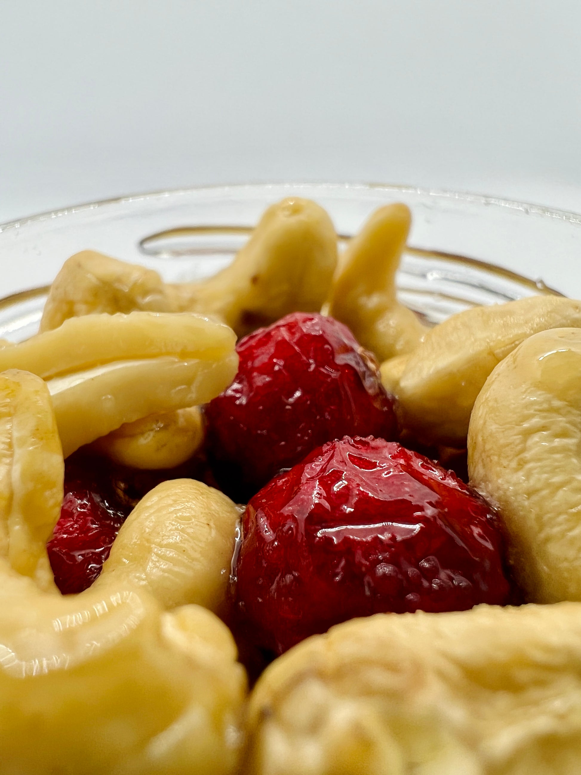 Sastāvs: medus 67%, indijas rieksti 12%, valrieksti, 12%, lielogu dzērveņu sukādes (dzērvenes, cukurs) 9%.