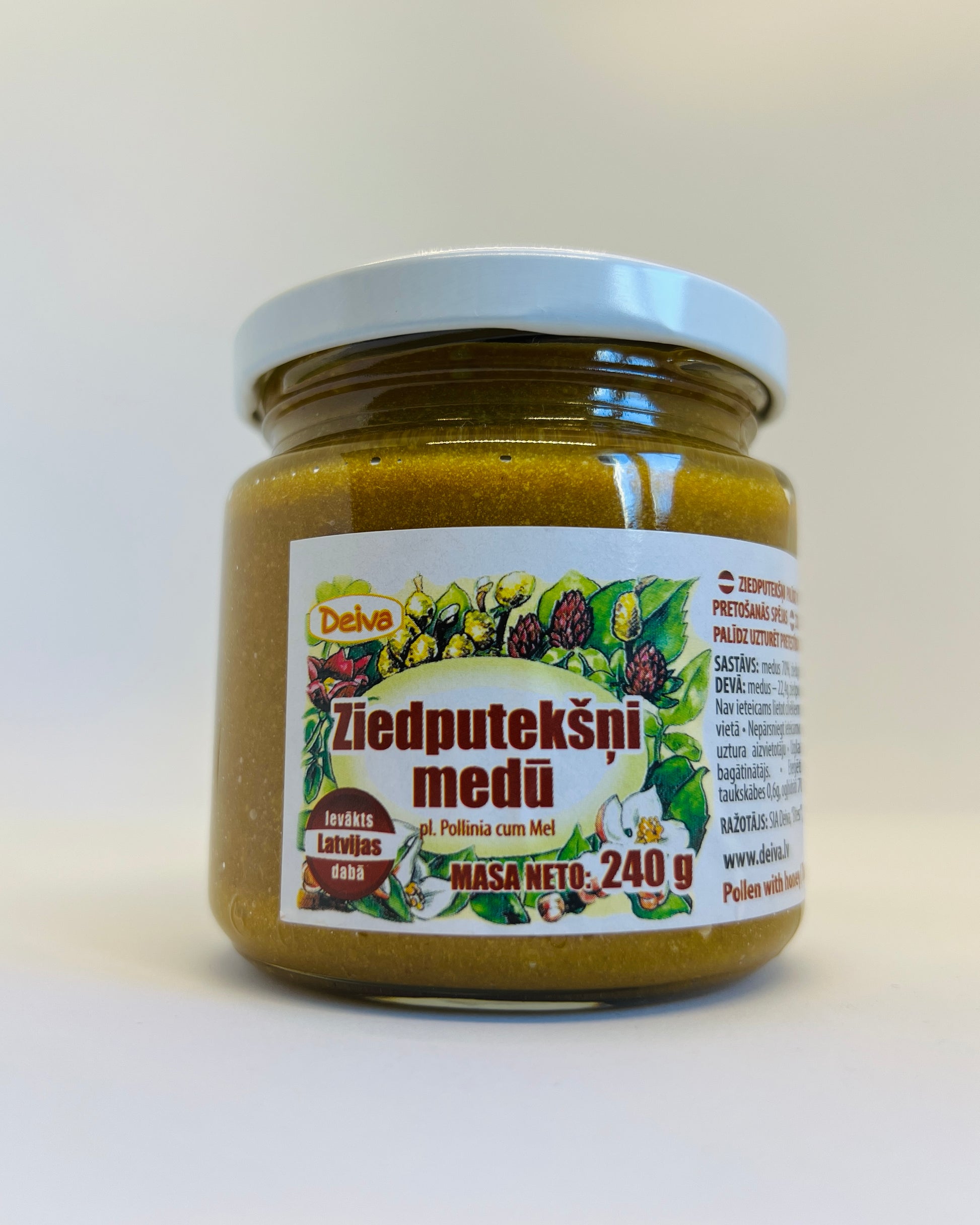 Sastāvs: medus 70%, ziedputekšņi 30%
